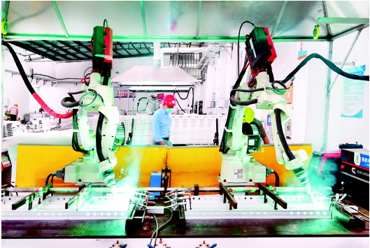 鋁合金模板作為一項新型模板技術,以其突出的生態(tài)環(huán)保和經(jīng)濟優(yōu)勢,取代了傳統(tǒng)竹木模板得到廣泛應用。圖為5月8日,遵義茍江經(jīng)濟開發(fā)區(qū)一家企業(yè)的機器人在自動焊接標準化鋁模板。記者 李楓 攝