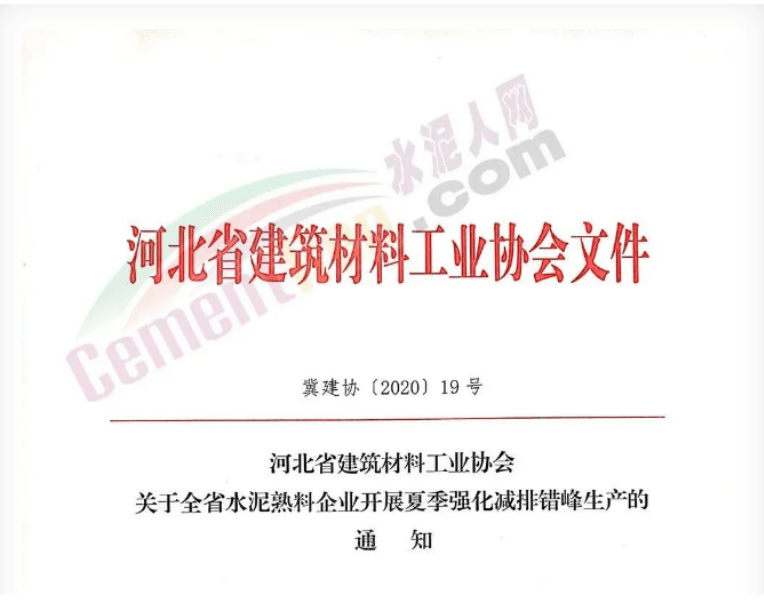 日前,河北省建筑材料工業(yè)協(xié)會(huì)發(fā)布《關(guān)于全省水泥熟料企業(yè)開展夏季強(qiáng)化減排錯(cuò)峰生產(chǎn)的通知》,河北省水泥企業(yè)結(jié)合疫情防控和復(fù)工復(fù)產(chǎn)情況,冀中南區(qū)域錯(cuò)峰停窯10天,冀北區(qū)域錯(cuò)峰停窯10天。