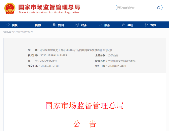 5月8日,市場監(jiān)管總局發(fā)布公告,公布了《2020年產(chǎn)品質(zhì)量國家監(jiān)督抽查計劃》,計劃共包括131種產(chǎn)品,其中,建筑材料中包括水泥、建筑防水卷材、混凝土輸水管、鋁合金建筑型材、熱軋帶肋鋼筋、硬聚氯乙烯(PVC-U)管材、鋼管腳手架扣件等。