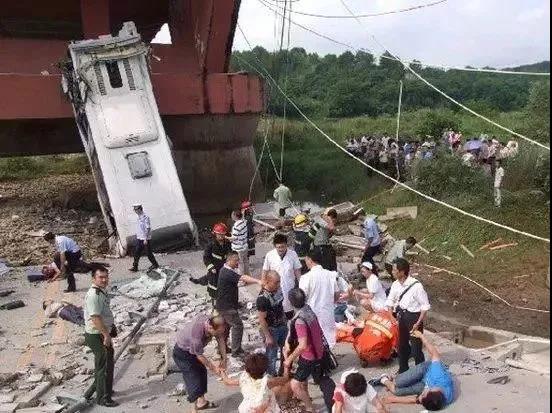 在公館大橋,該車和閩H30953旅游客車相向行駛時,因嚴重超載導(dǎo)致突發(fā)橋面坍塌,閩H30953大客車墜入橋下約8.8米河灘。