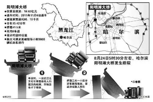 哈爾濱市政府公布了2012年“8.24”三環(huán)路群力高架橋洪湖路上行匝道特大交通事故的調(diào)查結(jié)果。經(jīng)專家組調(diào)查取證,導(dǎo)致大橋垮塌的直接原因是4輛貨車嚴重超載。