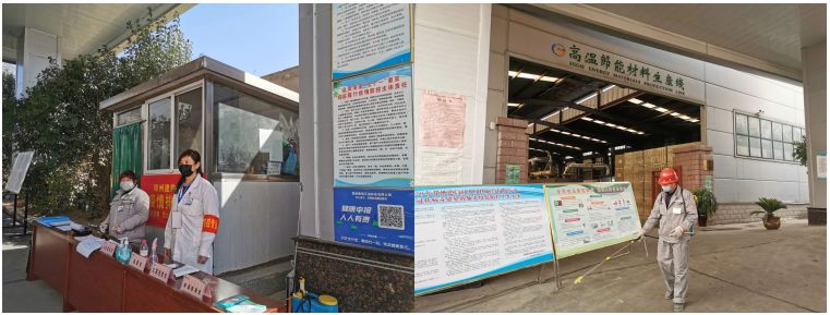 正式復(fù)工后,每日將員工健康信息通過“掃碼”上報(bào)給上級主管部門,每天對車間、辦公樓、餐廳、宿舍等公共場所至少開展2次大面積消毒工作;公司門口設(shè)置有檢測崗位,專人負(fù)責(zé)體溫測量和管理,建立臺(tái)賬,做好進(jìn)入廠區(qū)車輛、人員登記;保持生產(chǎn)車間環(huán)境清潔、通風(fēng),每個(gè)工位之間保持1米以上距離作業(yè),佩戴口罩;嚴(yán)格食堂進(jìn)餐管理,采用分時(shí)就餐;公司儲(chǔ)備了至少滿足2周需要的防護(hù)和消殺用品……