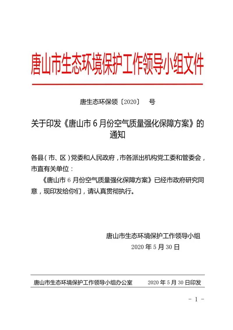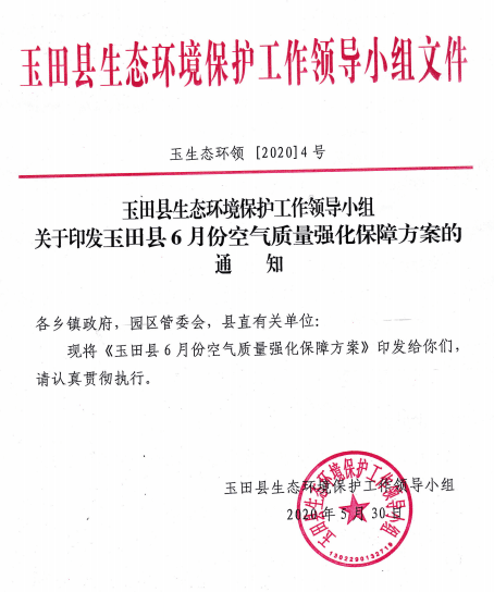 同期,唐山市玉田縣生態(tài)環(huán)境保護(hù)工作領(lǐng)導(dǎo)小組了發(fā)布了6月份空氣質(zhì)量強(qiáng)化保障方案。