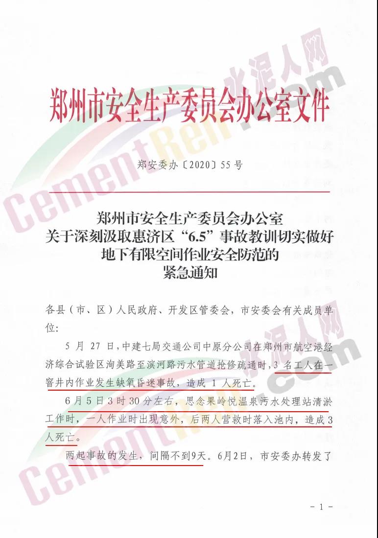 河南鄭州應(yīng)急管理局發(fā)布《關(guān)于深刻汲取惠濟(jì)區(qū)“6.5”事故教訓(xùn)切實(shí)做好地下有限空間作業(yè)安全防范的緊急通知》(鄭安委辦〔2020〕55號)提到:
