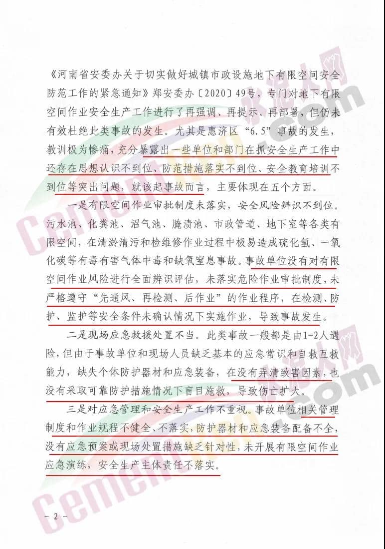 在6月2日,市安委辦曾經(jīng)轉(zhuǎn)發(fā)了《河南省安委辦關(guān)于切實(shí)做好城鎮(zhèn)市政設(shè)施地下有限空間安全防范工作的緊急通知》鄭安委辦〔2020〕49號,專門對地下有限空間作業(yè)安全生產(chǎn)工作進(jìn)行了再強(qiáng)調(diào)、再提示、再部署,但仍未有效杜絕此類事故的發(fā)生。尤其是惠濟(jì)區(qū)“6.5”事故的發(fā)生, 教訓(xùn)極為慘痛,充分暴露出一些單位和部門在抓安全生產(chǎn)工作中 還存在思想認(rèn)識不到位、防范措施落實(shí)不到位、安全教育培訓(xùn)不到位等突出問題,就該起事故而言,主要體現(xiàn)在五個方面。