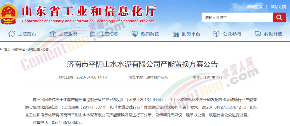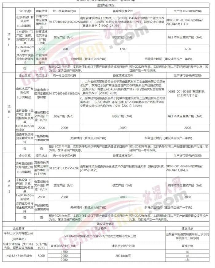 圖:濟(jì)南市平陰山水水泥有限公司產(chǎn)能置換方案公告