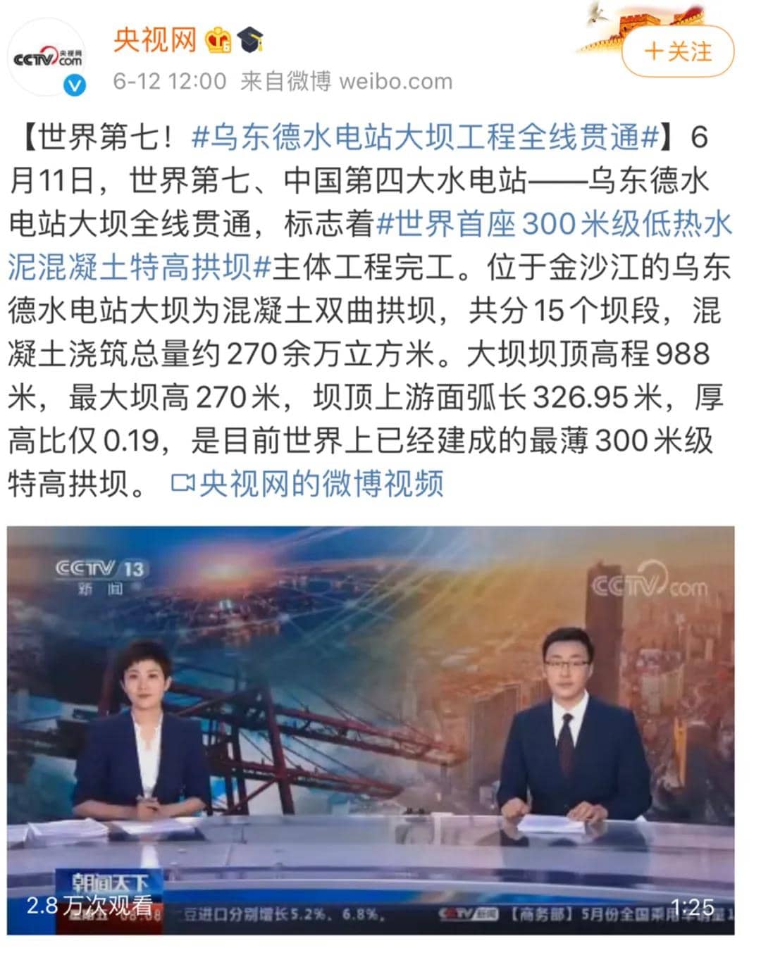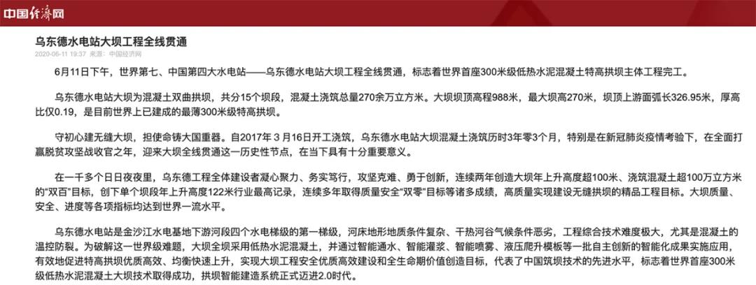 烏東德水電站這一重大工程節(jié)點(diǎn)立刻吸引了大量媒體關(guān)注包括人民日?qǐng)?bào)、新華社中央電視臺(tái)、國資小新、光明日?qǐng)?bào)等主流媒體第一時(shí)間對(duì)此事進(jìn)行了報(bào)道快來看看吧!
