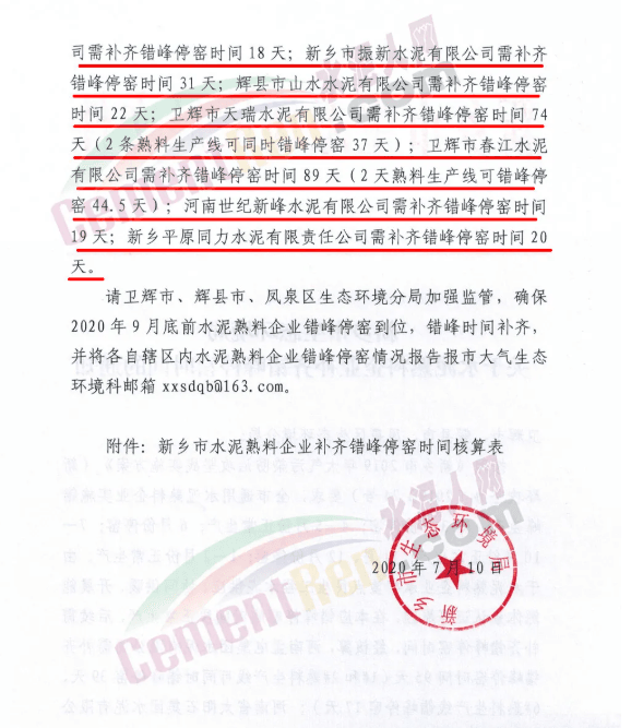 8、新鄉(xiāng)平原同力水泥有限責任公司需補齊錯峰停窯時間20天。