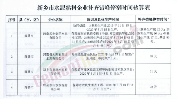 3、新鄉(xiāng)市振新水泥有限公司需補齊錯峰停窯時間31天;