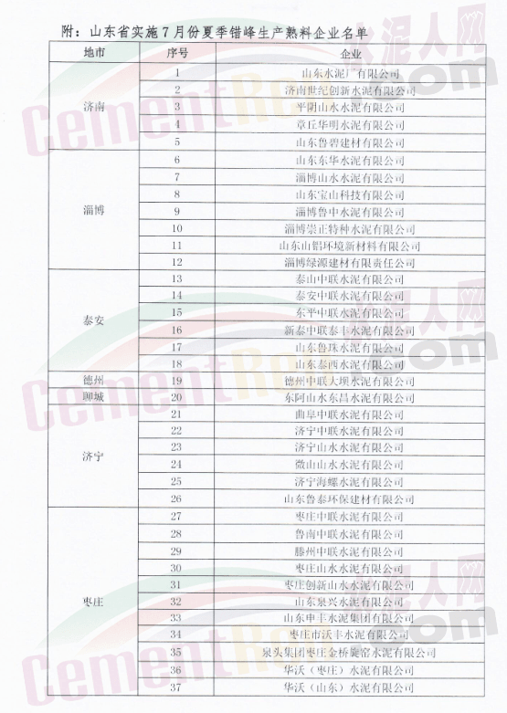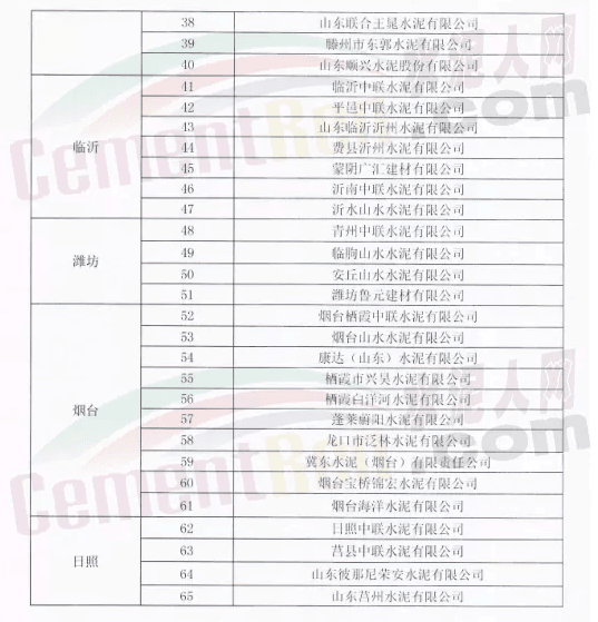 山東省水泥企業(yè)的熟料生產(chǎn)線(不含特種水泥窯,含建通窯)。