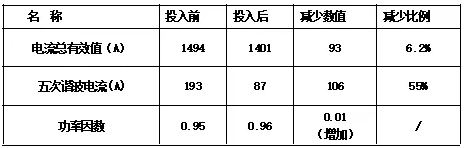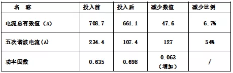 由表2可知,投入諧波動(dòng)態(tài)治理裝置后可使低壓母線電流有效值降低6.2%,低壓母線5次諧波電流值下降55%;提高電能質(zhì)量,提高功率因數(shù),減少電力安全事故;使企業(yè)的節(jié)省電能6%以上。