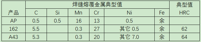 (三) 國內(nèi)某鋼廠在線修復(fù)LM礦渣立磨的過程中,采用明弧自保護焊絲SK AP-O, SK 162-O,SK A43-O,一周左右連續(xù)作業(yè)的方法在線修復(fù)了磨輥和磨盤襯板以及擋料圈,取得了理想的效果!后來該材料系列又在其它幾個集團公司做了使用,均滿足了客戶要求。焊絲成分參考/