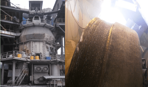(四) 修復(fù)過程及檢測:在保證有效的前處理情況下,必須進行堆焊過程控制,其實也是通過工藝參數(shù)的細化,來控制熱輸入/線能量來達到理想的狀態(tài)。參數(shù)控制包括:焊接電流,電壓,堆焊線速度,層間溫度等。目測主要是觀察電弧的穩(wěn)定性,飛濺的大小,焊縫成型,裂紋形式等;過程控制包括相對應(yīng)的樣板測試,尺寸隨檢等。隨后,在使用過程中,為了更有效的提高使用壽命,同時提請注意入料粒度,料層厚度等,這樣在保證粉磨質(zhì)量的同時提高產(chǎn)量。