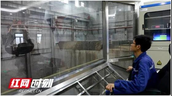 10月26日,在湖南省祁陽縣海創(chuàng)環(huán)??萍加邢薰局锌夭僮髦行?,技術(shù)人員正透過玻璃墻操控大型機(jī)器手處理廢物垃圾。說到垃圾處理廠,很多人的第一印象就是惡臭難聞,而這里卻聞不到一絲異味。