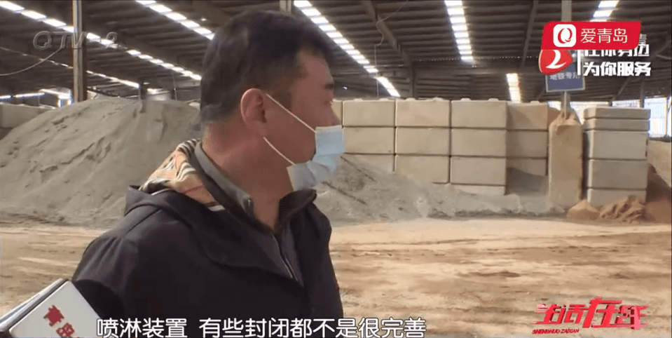 根據環(huán)評報告,青島上流建材有限公司的混凝土建設項目分為一期和二期,其中一期建設時間是2014年10月份,二期為2019年7月份,目前存在問題的正是二期的物料車間,按照環(huán)評手續(xù)上的要求,物料棚要實行全密閉,并且安裝噴淋設施,經常性灑水降塵。