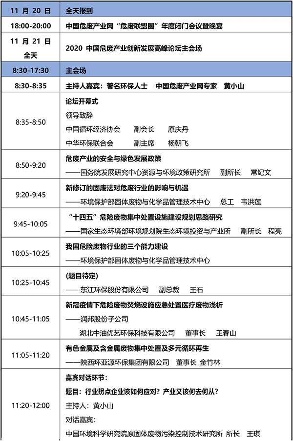 為規(guī)范危險(xiǎn)廢物處置工程的建設(shè)和運(yùn)行并提高危廢利用總體處置水平,控制環(huán)境風(fēng)險(xiǎn),改善環(huán)境質(zhì)量,助力推動(dòng)建立“無(wú)廢城市”綜合管理制度和技術(shù)體系,推動(dòng)完成“十四五”時(shí)期生態(tài)環(huán)境保護(hù)的總體目標(biāo),中國(guó)危廢產(chǎn)業(yè)網(wǎng)在成功舉辦三屆危廢高峰論壇的基礎(chǔ)上聯(lián)合相關(guān)部門將于2020年11月20日-22日在北京舉辦第四屆“中國(guó)危廢產(chǎn)業(yè)創(chuàng)新發(fā)展論壇暨危廢資源化與無(wú)害化處置研討會(huì)”。歡迎各單位選派或組織相關(guān)人員參加,現(xiàn)將論壇具體內(nèi)容通知如下: