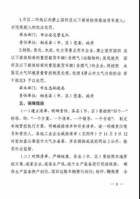 (二)對照清單,嚴格核查。各縣(市、區(qū))要按照本地管控方案,逐家企業(yè)、逐條生產(chǎn)線、逐個生產(chǎn)裝備進行現(xiàn)場核查,確保生產(chǎn)裝備停產(chǎn)到位,國四運輸車輛禁行到位;秸稈、鞭炮要全面禁燒、禁燃到位;各項治理任務要全面摸底、倒排工期、按時完成。同時,對鋼鐵企業(yè)秋冬季減排措施落實情況開展檢查,逐個核實高爐、燒結(jié)機、石灰窯、球團停產(chǎn)狀況,必須按照減排清單落實到位,嚴禁打折扣、開口子。