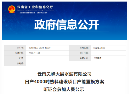 為貫徹落實《工業(yè)和信息化部辦公廳 國家發(fā)展改革委辦公廳關(guān)于嚴(yán)肅產(chǎn)能置換 嚴(yán)禁水泥平板玻璃行業(yè)新增產(chǎn)能的通知》(工信廳聯(lián)原〔2018〕57號)文件要求,依法依規(guī)從嚴(yán)審核項目產(chǎn)能置換方案,防止弄虛作假,消除新增產(chǎn)能隱患,云南省工業(yè)和信息化廳決定委托中國國際工程咨詢有限公司組織召開云南尖峰大展水泥有限公司日產(chǎn)4000噸熟料建設(shè)項目產(chǎn)能置換方案聽證會。按照《云南尖峰大展水泥有限公司日產(chǎn)4000噸熟料建設(shè)項目產(chǎn)能置換方案聽證會公告》參加人員構(gòu)成及產(chǎn)生辦法,經(jīng)過公開自愿報名、推薦和邀請等方式,產(chǎn)生了參加聽證會的相關(guān)人員?,F(xiàn)公示如下: