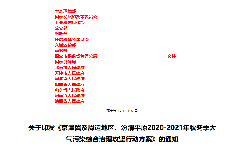 《京津冀及周邊地區(qū)、汾渭平原2020-2021年秋冬季大氣污染綜合治理攻堅(jiān)行動(dòng)方案》
