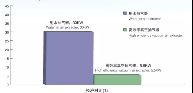 2、 高效率真空抽氣器極限真空度68mbar絕壓,額定抽氣量7.5kg/h,功率5.5KW 3、替代射水抽氣器可降低運行功率24KW,年可節(jié)電172800Kwh(300天"24小時24kw)