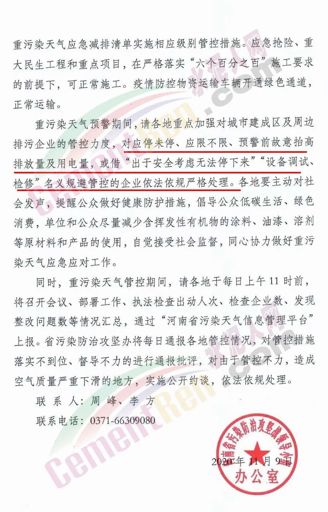 同日,鄭州市環(huán)境污染防治攻堅(jiān)戰(zhàn)領(lǐng)導(dǎo)小組辦公室發(fā)布《關(guān)于進(jìn)一步加嚴(yán)污染天氣應(yīng)急減排措施的通知》稱, 按照省生態(tài)環(huán)境廳《關(guān)于在重點(diǎn)行業(yè)延續(xù)實(shí)施輕中度污染管控工作的通知》要求,在10月31日《關(guān)于調(diào)整污染天氣應(yīng)急減排措施的通知》要求基礎(chǔ)上,實(shí)施加嚴(yán)措施:
