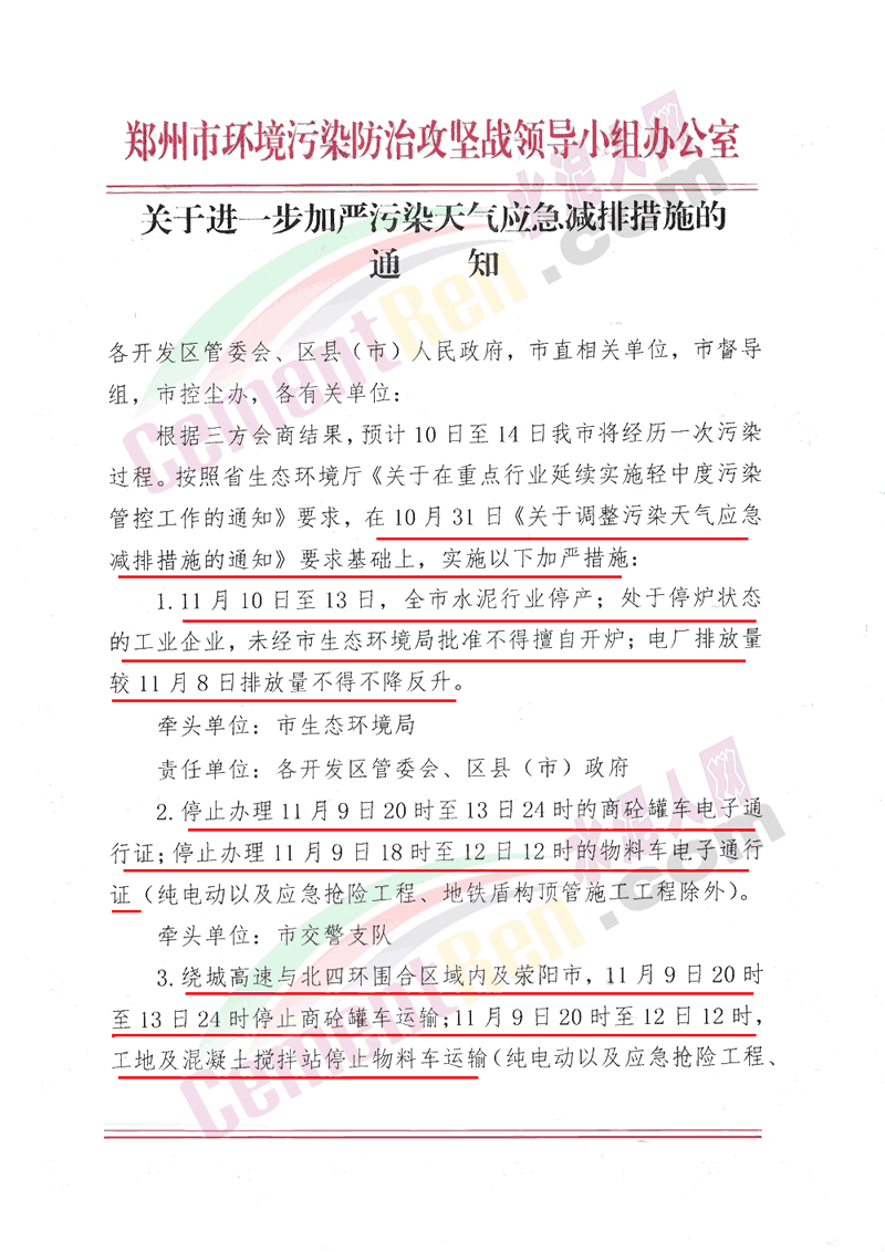 3. 繞城髙速與北四環(huán)圍合區(qū)域內(nèi)及滎陽市,11月9日20時(shí)至13日24時(shí)停止商砼罐車運(yùn)輸;11月9日20時(shí)至12日12時(shí),工地及混凝土攪拌站停止物料車運(yùn)輸。4