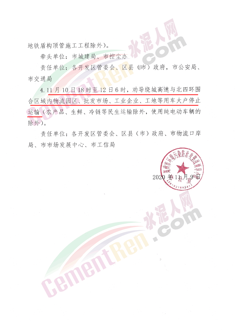 2, 停止辦理11月9日20時(shí)至13日24時(shí)的商砼罐車電子通行證;停止辦理11月9日18時(shí)至12日12時(shí)的物料車電子通行證。