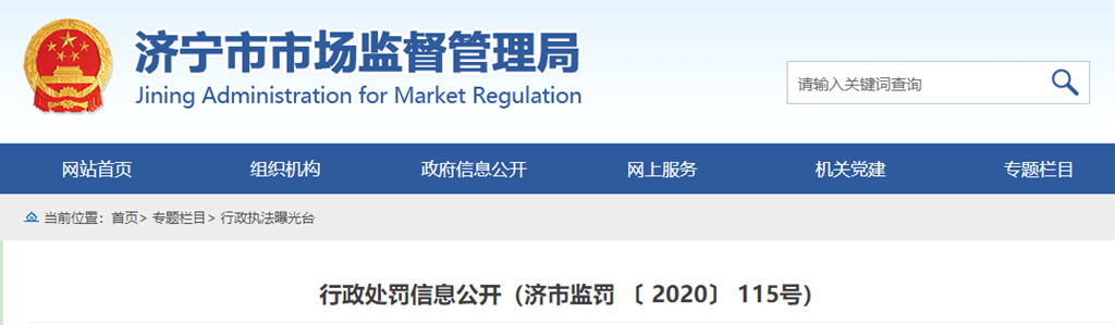 行政處罰信息公開(濟市監(jiān)罰 〔 2020〕 115號)