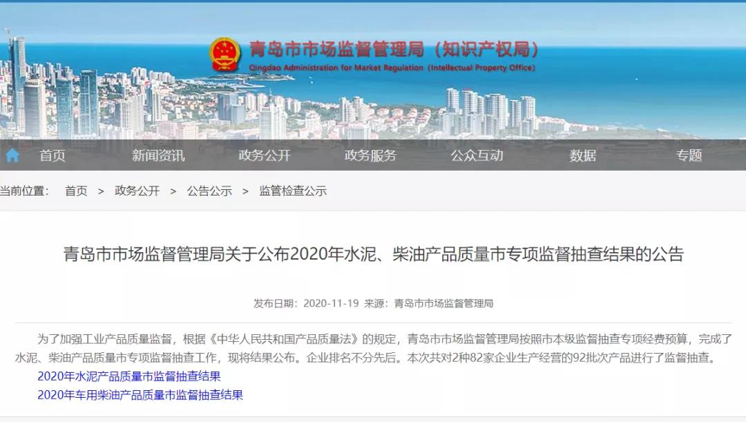 近日青島市市場監(jiān)管局發(fā)布2020年水泥、柴油產(chǎn)品抽檢報告,結(jié)果顯示,柴油產(chǎn)品合格率為100%,水泥合格率為96.7%。