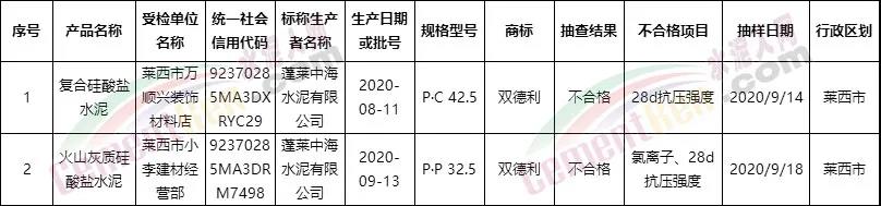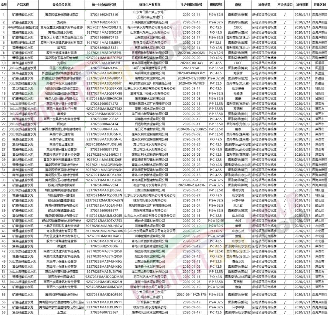 對于不合格產(chǎn)品,青島市市場監(jiān)管部門已依法進行后處理工作。監(jiān)督抽查合格產(chǎn)品列表(水泥)