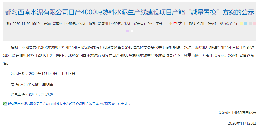 日前,貴州省黔南布依族苗族自治州工業(yè)和信息化局官網(wǎng)發(fā)布《都勻西南水泥有限公司日產(chǎn)4000噸熟料水泥生產(chǎn)線建設(shè)項(xiàng)目產(chǎn)能“減量置換”方案的公示》 。公示顯示,都勻西南水泥有限公司將通過退出貴州中誠(chéng)水泥有限公司和貴州三都西南水泥有限公司兩條2500t/d熟料生產(chǎn)線,新建一條4000t/d新型干法熟料生產(chǎn)線。