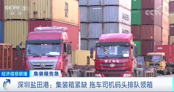 在鹽田港碼頭的集裝箱堆場,記者觀察到現(xiàn)在出現(xiàn)了拖車司機排隊領(lǐng)箱的場景。近期由于境外疫情持續(xù),集裝箱流轉(zhuǎn)速度放慢,我國短暫地出現(xiàn)了缺箱的情況,前來領(lǐng)箱的拖車司機有時候甚至?xí)o功而返。
