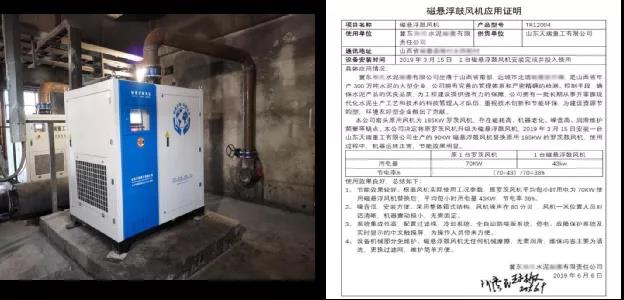 山東天瑞重工磁懸浮鼓風(fēng)機(jī)在冀東水泥某公司應(yīng)用為例(參見(jiàn)冀東某水泥現(xiàn)場(chǎng)安裝及應(yīng)用證明圖2),原窯頭使用的185KW羅茨風(fēng)機(jī),存在能耗高、機(jī)器老化、噪音大、潤(rùn)滑維護(hù)頻繁等問(wèn)題,天瑞重工針對(duì)窯體工況的具體情況進(jìn)行精準(zhǔn)選型、量身定制,將原185KW羅茨風(fēng)機(jī)更換為90KW的天瑞重工磁懸浮鼓風(fēng)機(jī),使用磁懸浮風(fēng)機(jī)之后用電量由原羅茨風(fēng)機(jī)用電量70 KW/h,降至目前43KW/h,節(jié)電率38%,噪聲由原羅茨風(fēng)機(jī)的120db降到現(xiàn)80db以下,節(jié)能降噪效果顯著。
