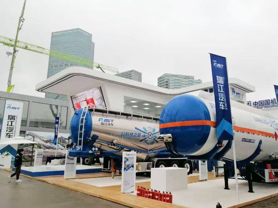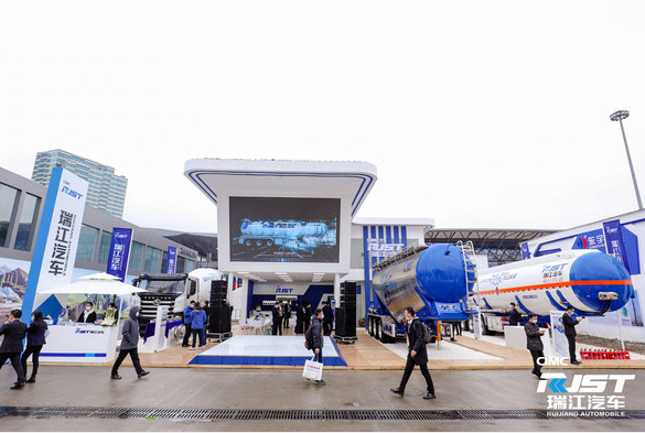 在展會現(xiàn)場,中集瑞江全新一代智能混凝土攪拌車“紅巖瑞江”攪拌車、“鋁神1號”液罐車以及2021款鋁合金粉罐車亮相,吸引了眾多參展人士的圍觀。