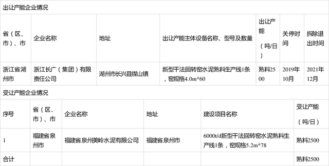 根據(jù)《浙江省經(jīng)濟和信息化委員會關(guān)于印發(fā)浙江省部分產(chǎn)能嚴(yán)重過剩行業(yè)產(chǎn)能置換實施細(xì)則的通知》(浙經(jīng)信建冶煤〔2018〕230號),現(xiàn)將浙江長廣(集團)有限責(zé)任公司日產(chǎn)2500噸新型干法回轉(zhuǎn)窯水泥熟料生產(chǎn)線產(chǎn)能指標(biāo)出讓情況予以公示,公示時間為2020年11月26日起10個工作日,聯(lián)系電話:0571-87058271.歡迎社會公眾進行監(jiān)督。