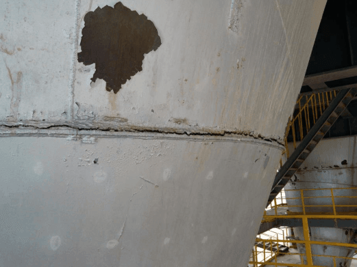 還有一個更棘手的問題就是使用鋼板倉難以及時發(fā)現(xiàn)隱患。使用鋼板倉固然能降低一部分投資成本,但同時也需承擔巨大的安全風險及后期維護成本,如除銹、防腐、精細操作、高空修復費用等。從以上發(fā)生的鋼板倉坍塌事故中不難看出,鋼板倉存在的隱患很難被預先察覺,特別是高處焊縫開裂情況基本沒法近距離巡檢出來。