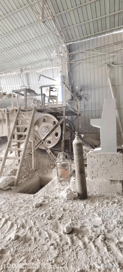 存在的隱患問題:1.地面破碎系統(tǒng)設(shè)備設(shè)施無防護(hù)罩;2.井下鏟裝機(jī)械沒有配備滅火器;3.井下爆破作業(yè)采用固定母線放炮;4.井下局扇放置在井巷底板上,沒有安裝局扇托架;5.井下施救供水管使用膠質(zhì)水管;6.井下東1工作面、西1工作面、西2工作面壓風(fēng)自救和供水施救系統(tǒng)未到工作面;7.負(fù)100運(yùn)輸巷頂板存在松石,沒有及時(shí)清頂;8.氧氣瓶與液化氣瓶混放在倉庫中;9.廠區(qū)未設(shè)置安全警示標(biāo)志;10.現(xiàn)場電焊工未見到操作證書。