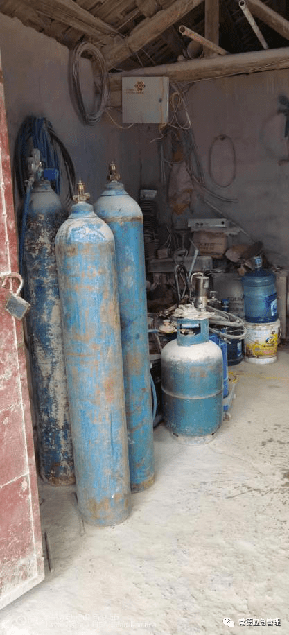 地面機(jī)電儲存室氧氣瓶和液化氣瓶混放