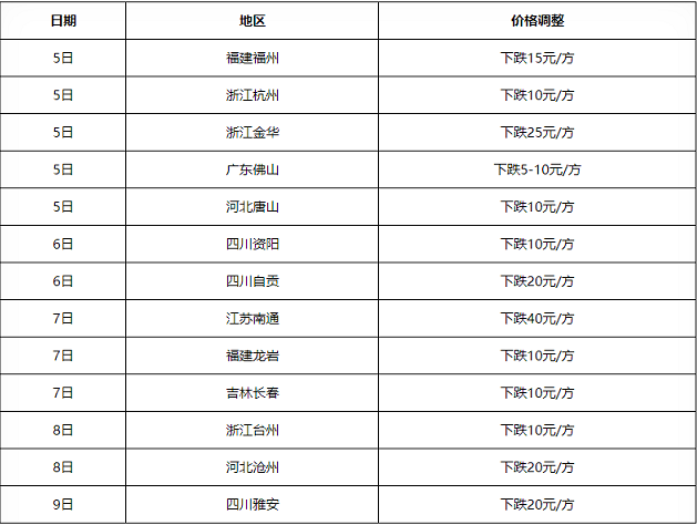 進(jìn)入七月份,西南四川、華東江蘇、浙江、福建以及河北唐山、滄州、廣東佛山、東北吉林等多區(qū)域商混價格出現(xiàn)5-40元/方不等的下跌。