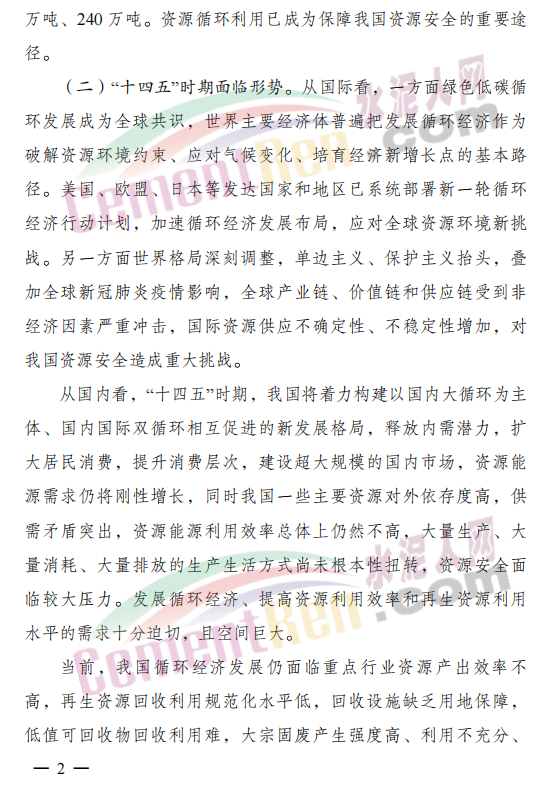 “十四五”循環(huán)經(jīng)濟(jì)發(fā)展規(guī)劃的通知