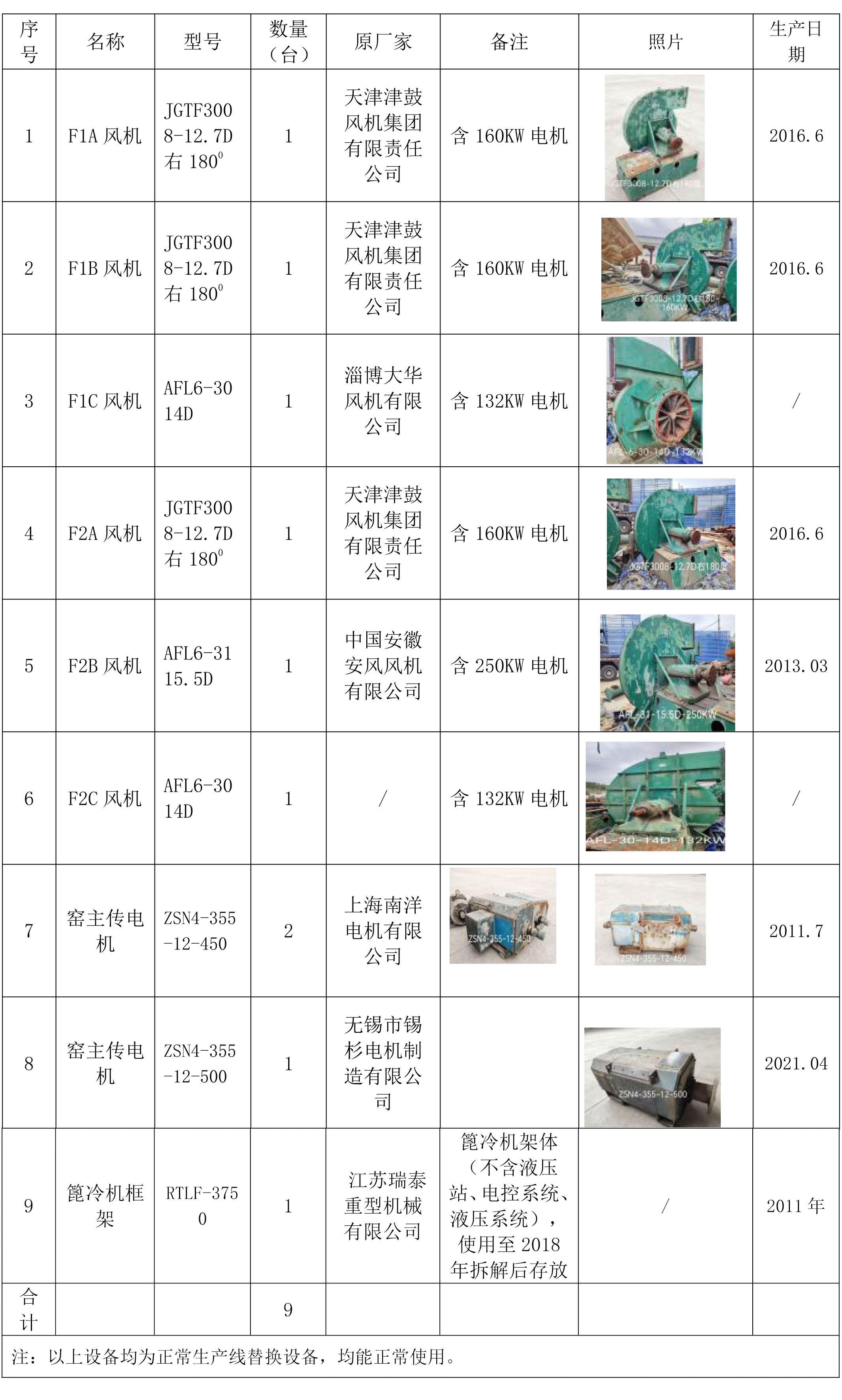 山東泰西水泥有限公司現(xiàn)有閑置窯主傳電機、篦冷機風機及篦冷機框架擬進行公開外賣處理現(xiàn)將相關(guān)事宜告知如下: